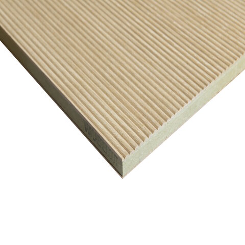 Een diep ribbel profiel aangebracht in de lengterichting van 2,5 mm dik fineer. Ten behoeve van rondwerk is deze structuur beschikbaar op vlies en/of geperst op een vochtwerende MDF drager voor een vlakke toespassing.