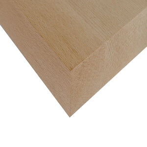Beuken hout is een harde en slijtvaste fijn nervige houtsoort. Beuken hout dat wordt gestoomd is stabieler en kleurt door het karamelliseren van onder andere suikers licht roze.Foutvrij hout met kernhout hout is zo goed als vrij van oneffenheden zoals draadverloop, kruisdraad en kwasten. Het grote kleurcontrast tussen spint- en kernhout is toegestaan.Het massief houten paneel is opgebouwd uit vallend lange gevingerlaste delen met een lengte van circa 250 tot 500 mm lang en een breedte van circa 40 mm.A kwaliteit is een "foutvrije" kwaliteit met minimale gebreken en of kleurnuances.B kwaliteit is een kwaliteit waarin draadverloop, kleurnuances, opengebreken en spiegels zijn toegestaan.Het aantoonbaar duurzaam geproduceerde materiaal is 100% FSC gecertificeerd.